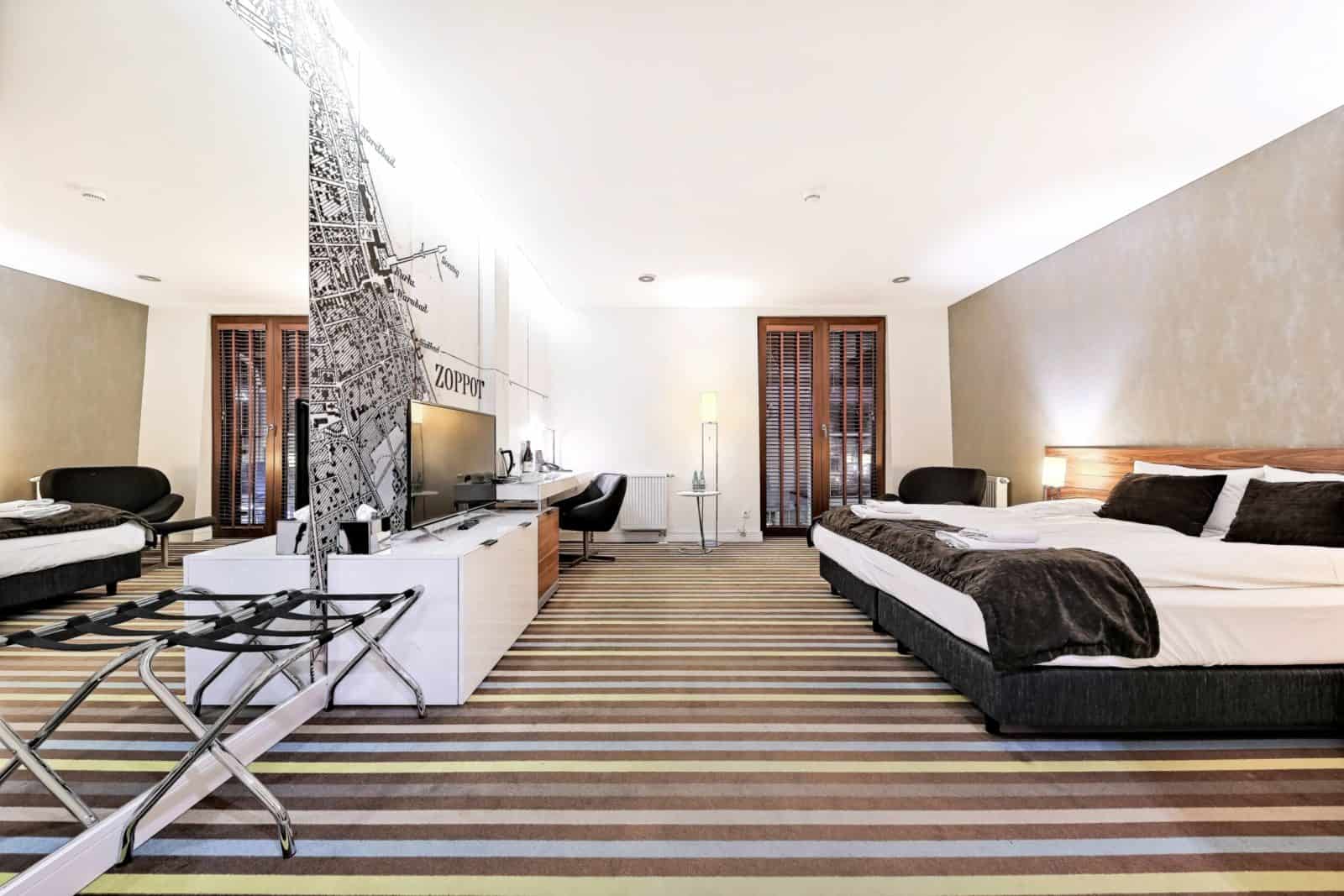 Zależy Ci na komfortowym noclegu w sercu Trójmiasta? Nasz luksusowy hotel przy plaży i molo w Sopocie oferuje przestronne, wygodne pokoje i apartament, które zadowolą nawet najbardziej wymagających Gości. Połączenie klasycznej elegancji z nowoczesnym, minimalistycznym wzornictwem tworzy niepowtarzalny klimat, a bliskie sąsiedztwo Bałtyku znacząco podnosi atrakcyjność hotelu. Zachęcamy do zapoznania się z ofertą naszych pokoi i apartamentu oraz zarezerwowania noclegów na weekendowy lub dłuższy pobyt!
