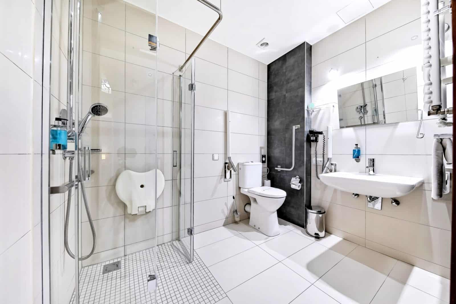 W zależności od preferencji naszych Gości, pokój typu LUX można zarezerwować w wariancie z prysznicem lub z wanną. Jeden z pokoi w tej kategorii został również wyposażony we wszystkie niezbędne przystosowania i przygotowany specjalnie z myślą o osobach niepełnosprawnych.